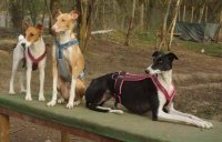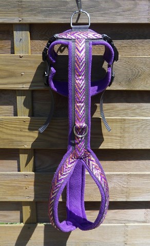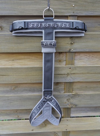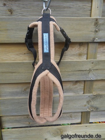 - Die Geschirre sind aus stabilem Gurtband gefertigt und werden wahlweise mit Fleece oder Softshell hinterlegt.